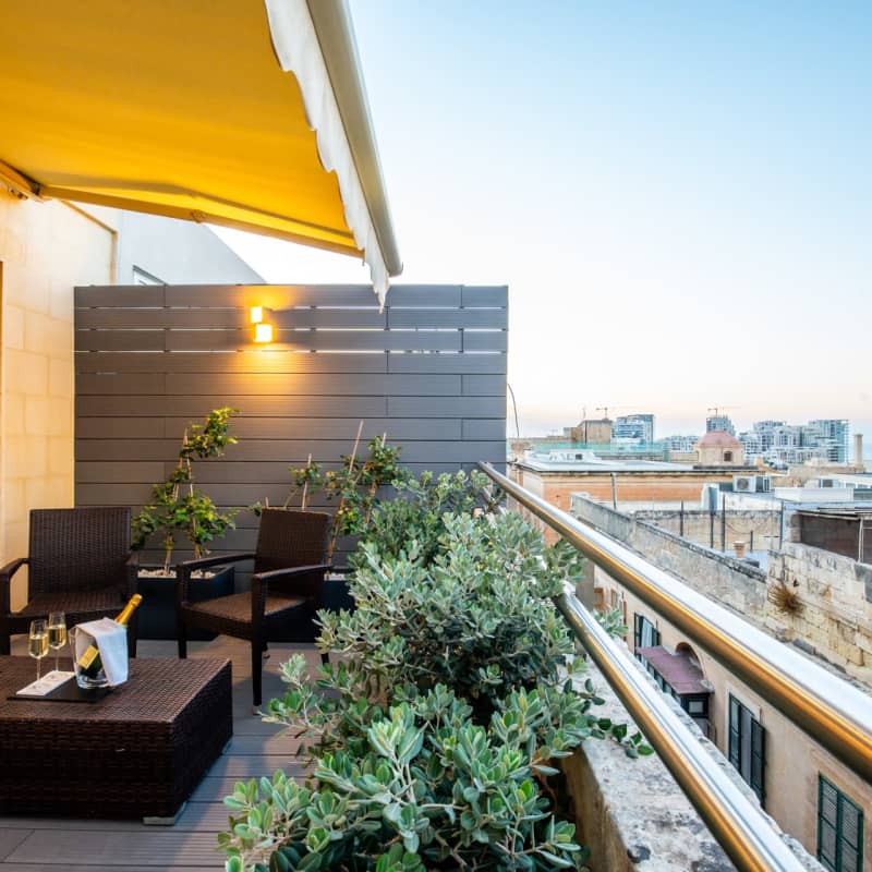 Inside the hotel, you'll discover a harmonious blend of Maltese heritage and contemporary design, creating a unique and inviting atmosphere. Each meticulously designed room prioritizes your comfort and relaxation. For those with discerning tastes, our chauffeur service can provide seamless transportation around the island, ensuring your convenience during your stay.